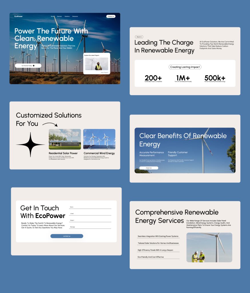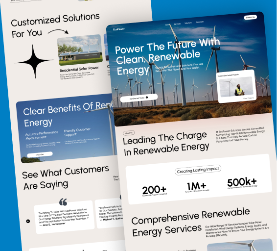 EcoPower needed a professional online presence to represent their renewable energy solutions. We created a clean and engaging website that communicates their mission of sustainability and innovation. The design emphasizes their services, projects, and eco-friendly values with a balance of visuals and informative content. The result is a website that not only builds trust with potential clients but also positions EcoPower as a reliable energy partner.